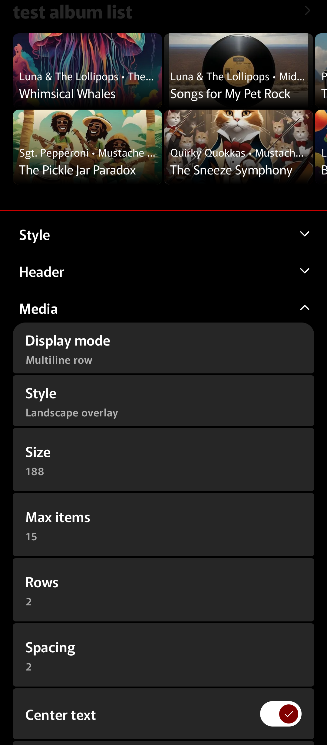 Edit layout for a default Home Page entry, or for an album-based playlist. (Track based playlists do not have the Center Text option…)