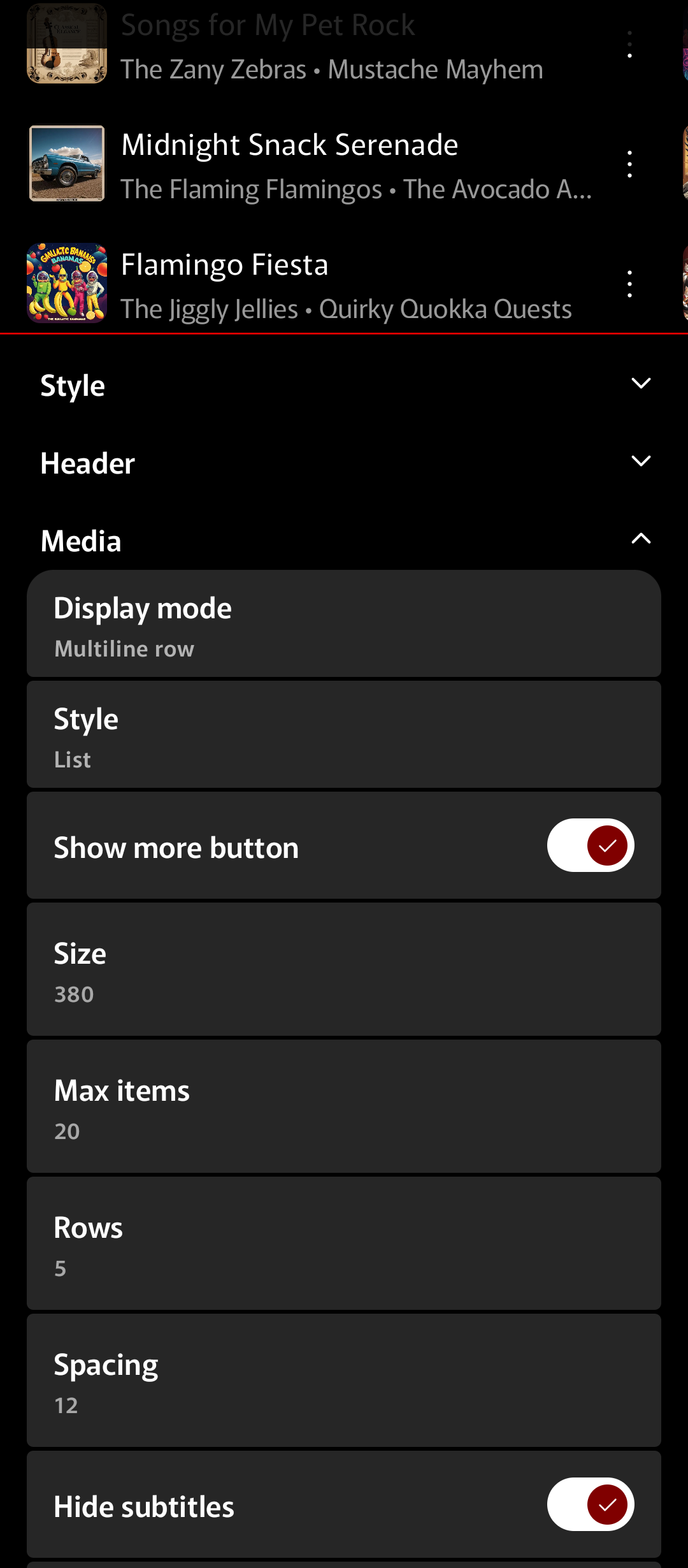 For Home page entries set to “Multi Line Row > List,” we are presented an option to “Hide subtitles.”