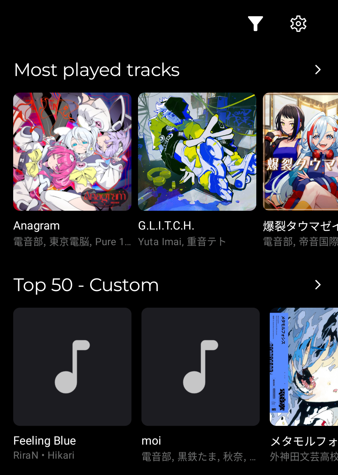 - No filters, top is pre-made / in-built. All 3 tracks are the same in both views, all are not playable.