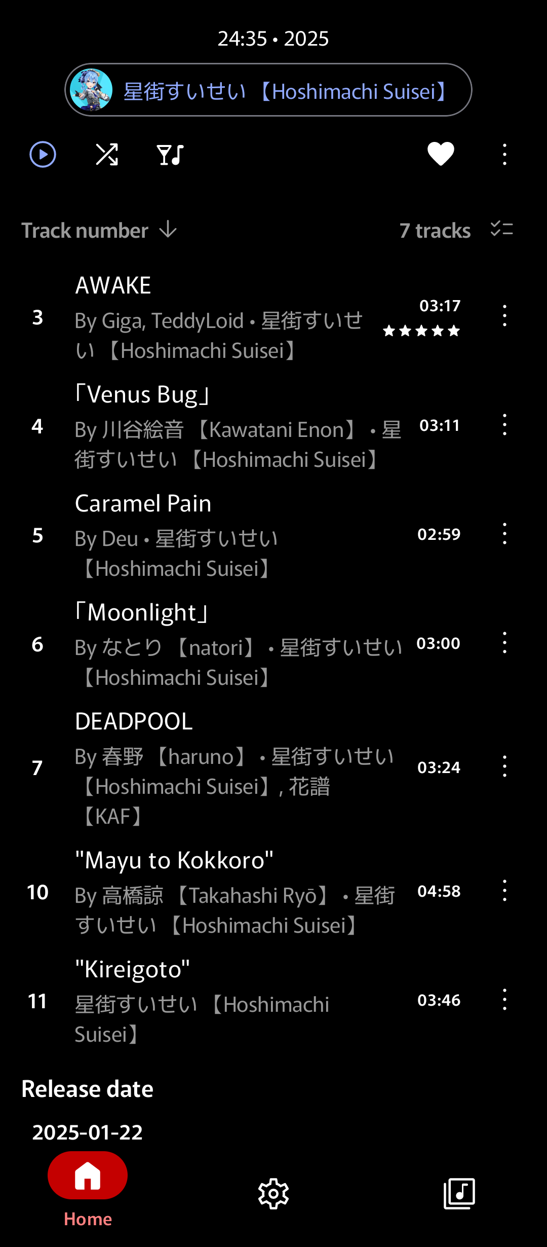 Pic 3: More reasonable example to highlight the redundant data. The album artist is already shown at the top. Why repeat it in the track list? Replace it with “ft. __” much like composers have “By __ •”