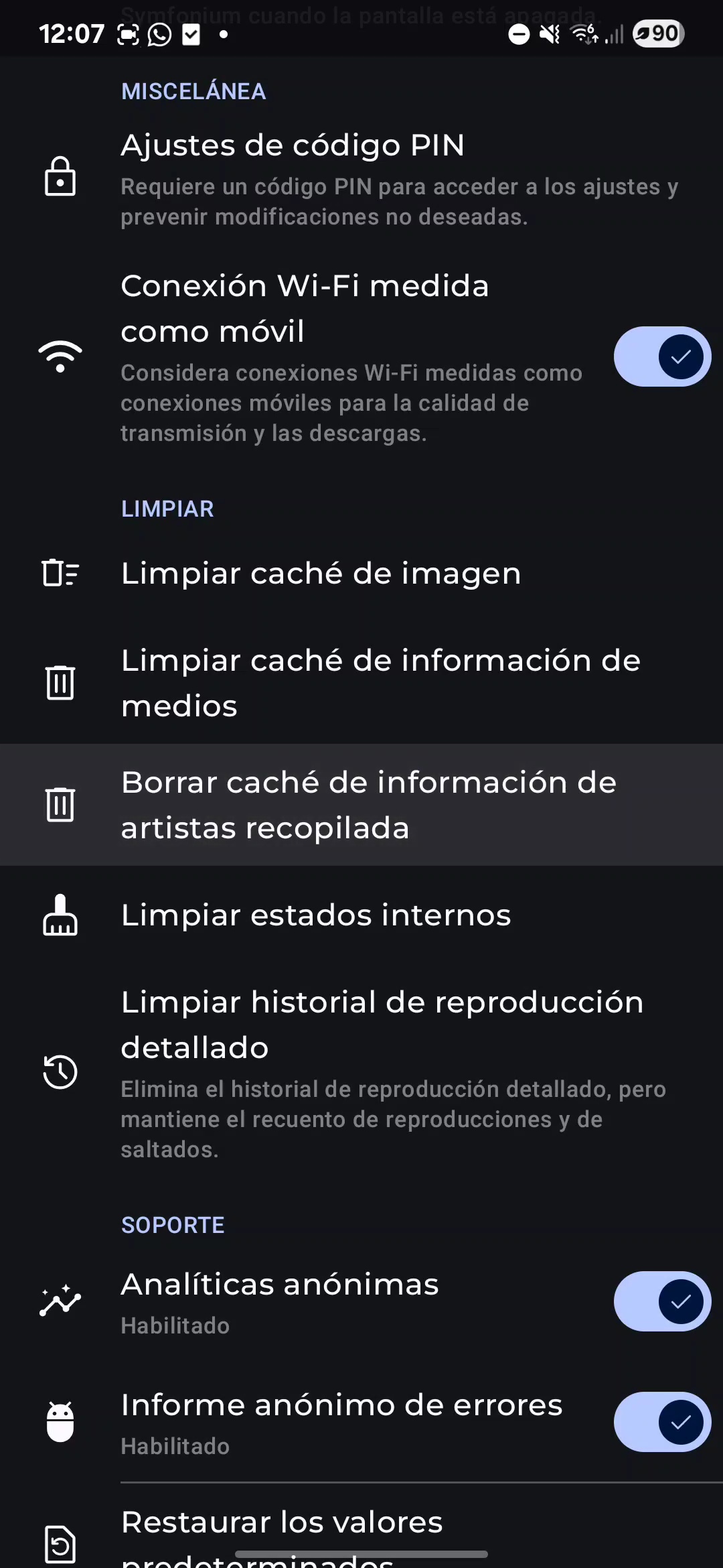 So I have an artist that I added her LastFm description recently and is now correctly showing on my Navidrome server but Symfonium does not fetch it. Looking at the logs the correct query is generated and executed but it appears that artists.description is empty in the Symfonium database. I tried deleting the cache but the button in advanced settings does nothing and shows nothing. I also tried deleting the cache from android settings and still does not fetch it when synchronizing.