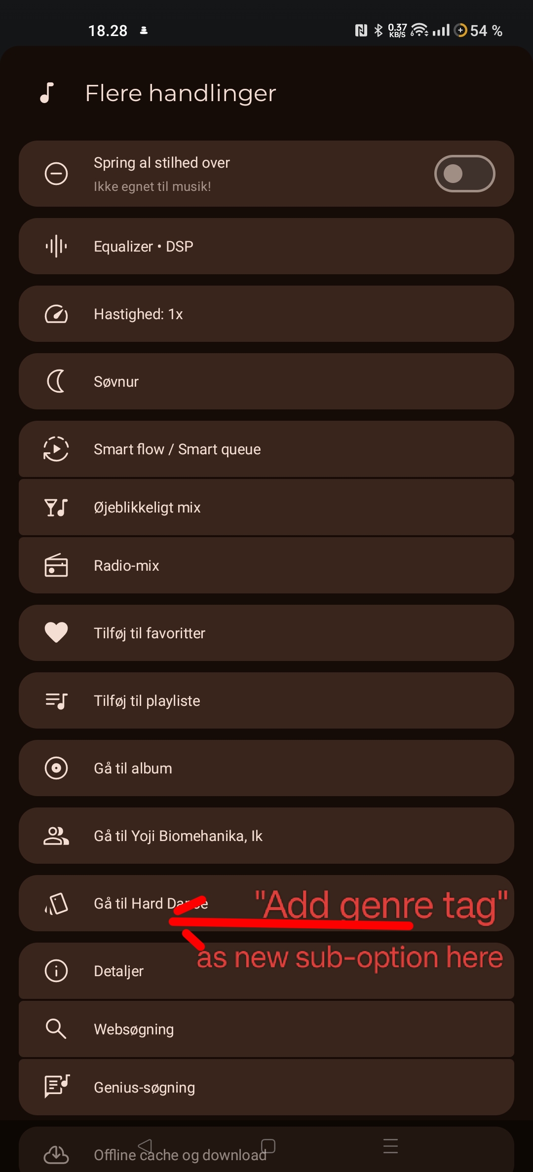 Just simply being able to assign a specific genre to an existing track. Could be done by opening options for the individual track and then picking such an option. Then you pick it from a list Symfonium uses. Maybe - if technically possible - even create genres yourself and removing wrongly assigned genre tags.