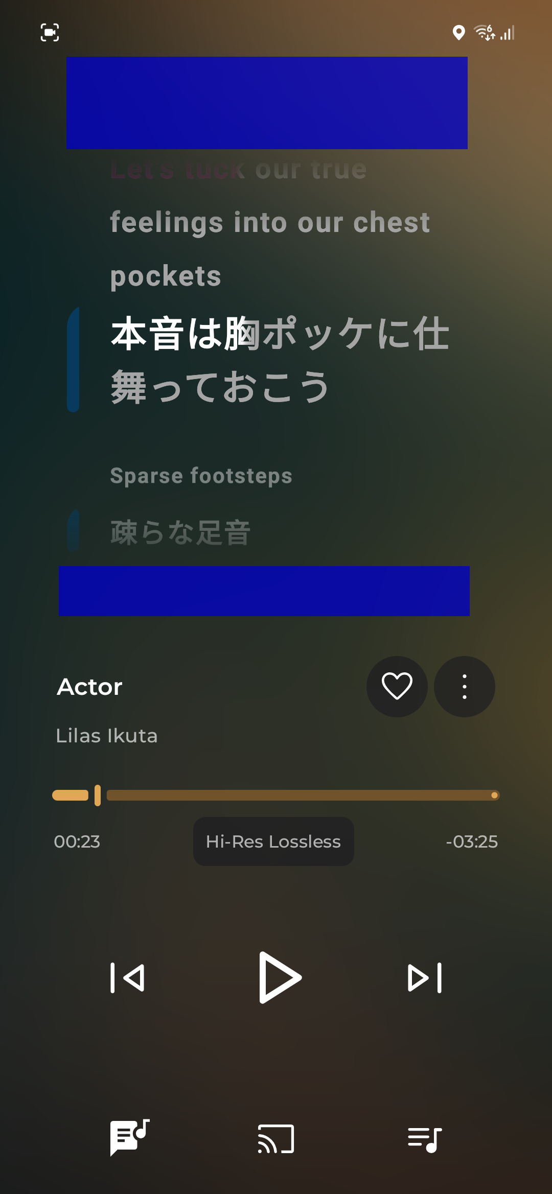 This time, I’ve been lucky enough to catch a Translation (it could be a lyric line) that goes a bit over the cover art area, so it gets a bit cut off.