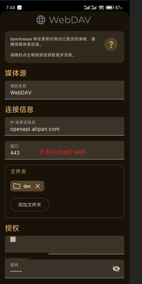 After some configurations I found some complainment while connecting to aliyundrive(in China) webdav protocol, it lists the music items well but cannot play, could you have a look what’s going on here?