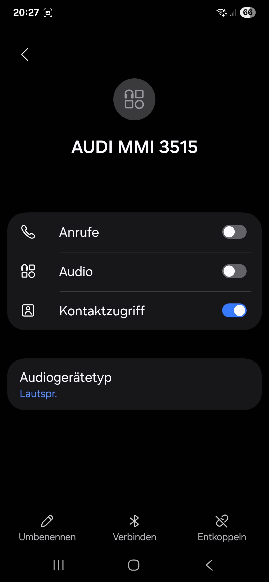 While searching for the reason I came along a setting (I think it was in bluetooth settings) declaring the car audio bluetooth connection as “other” (in german “Sonstiges’) not as “speaker” or “headphone”…