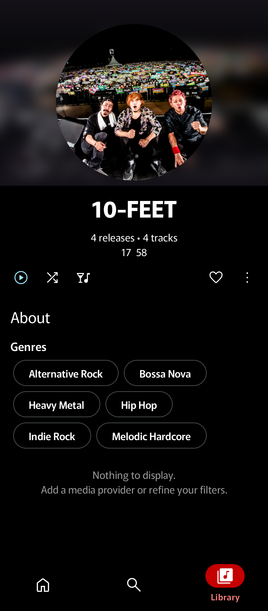 Pic 3: Local Device provider is toggled to Hidden in Source Filters menu. Count and Duration remain unchanged (assuming you can still access the Artist’s page to see them.)