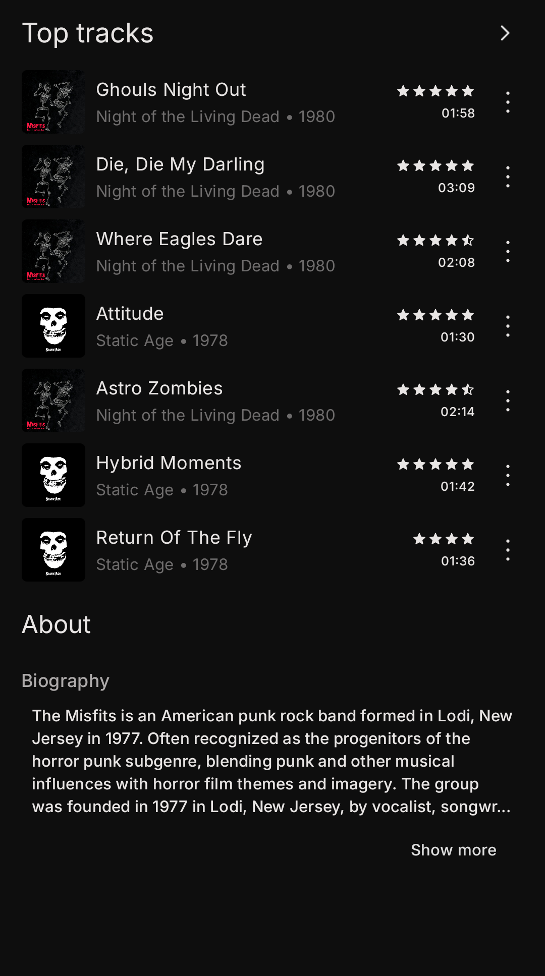 And here are more different color artists pages in my configuration for both white and dark themes.