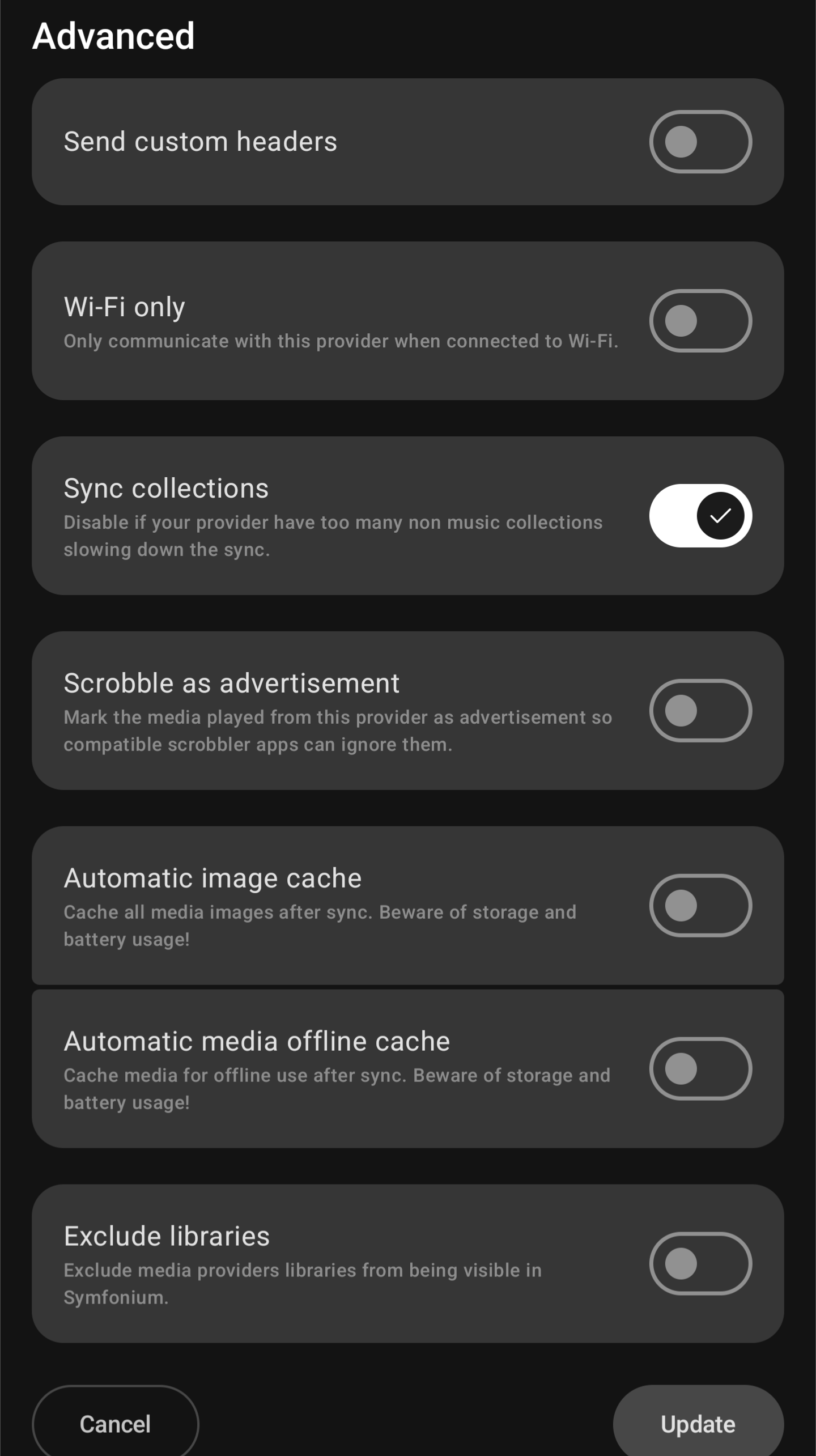 Thanks for that guidance. There’s ‘manage providers’ in Symfonium but I don’t see a toggle for that option (if that’s what you were referring to)