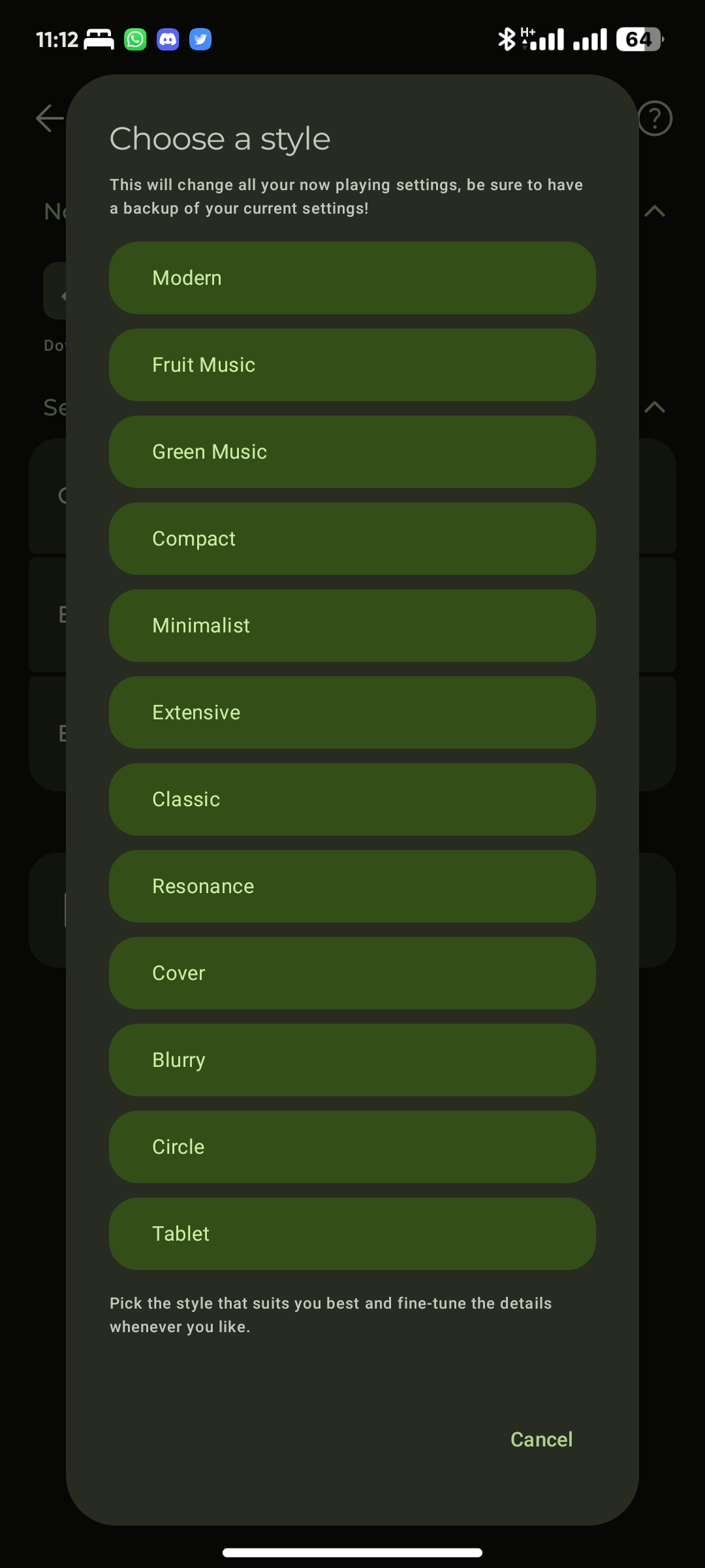 I lost all my customization presets. I had been using the app up to about just an hour before making this. I browsed reddit/twitter with the app open in RAM but without music playing. After about 45 minutes of that I wanted to play some music and then I was greeted with a set-up process as if I had bought the app for the very first time. I thought it was a new set-up process for new users, considering the visual additions in the new Beta and maybe a bug had just brought it up. So I went through the process of choosing a preset without thinking much of it. Once I dismissed the set-up process though I went to switch back to my regular homescreen set-up and it along with everything else I’d made was gone. Same thing with my now playing set-ups. And those are the only things affected. My playlists, playback data, rating information and color themes are still here.