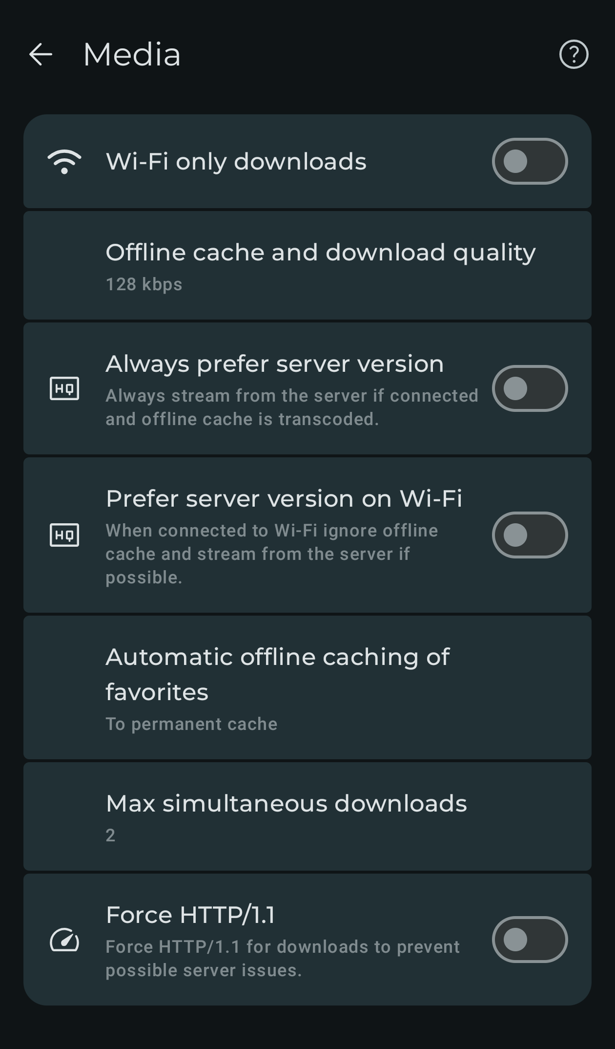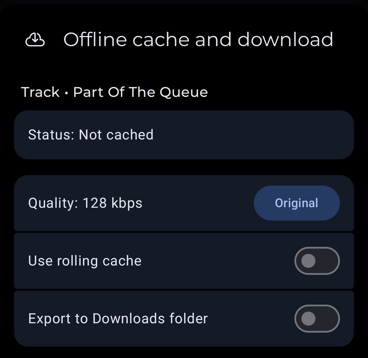 Here comes the fun part: Setting max bitrate on NaviDrome to 128 kbps, in Symfonium click “Offline cache and download” and select Original: now it requests 128 kbps correctly.