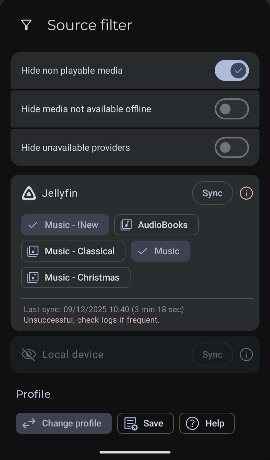 I tried removing and re-adding the jellyfin library to Symphonium, now I can’t play anything and the sync still fails in the same way.