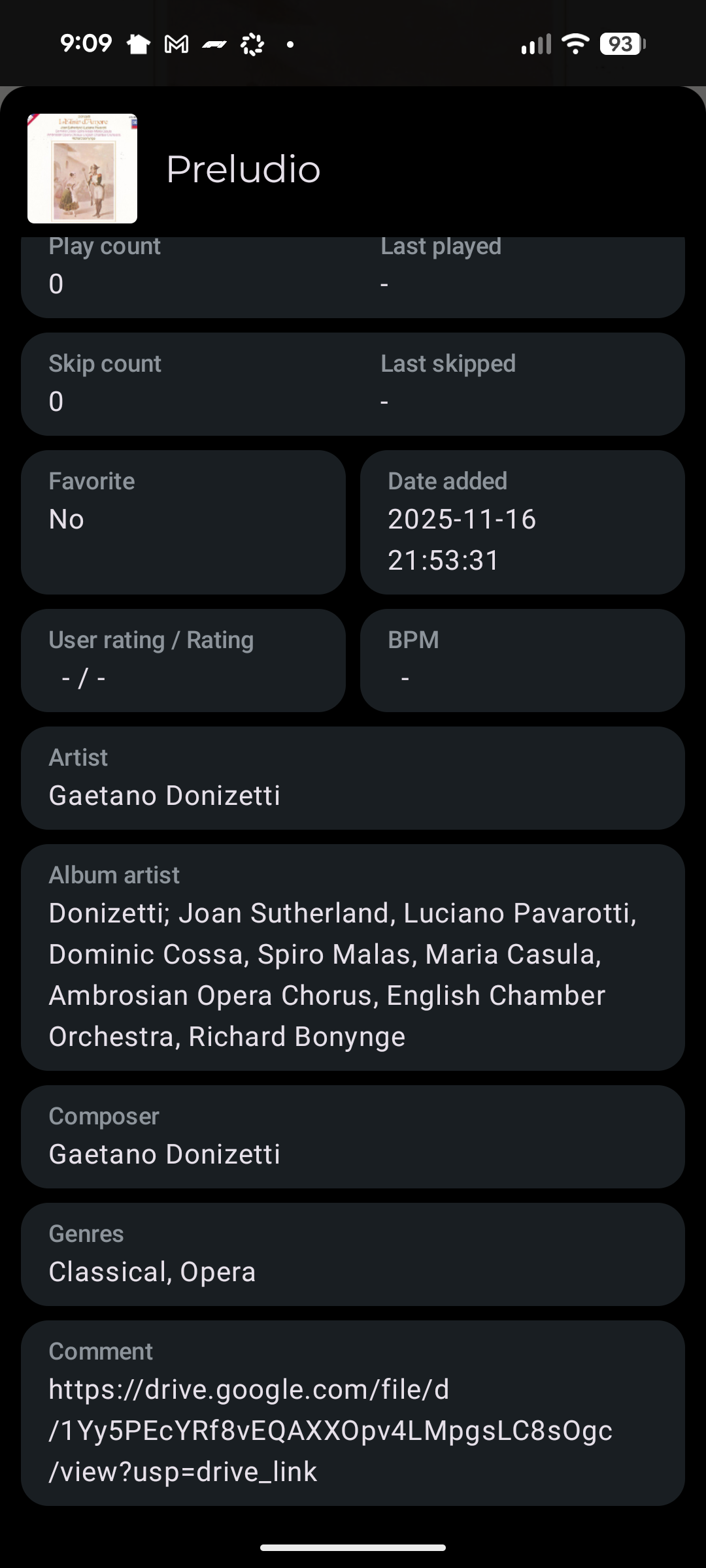 Navidrome displays the text of the COMMENT tag on the album page (along with highlighting URLs to make them clickable links). I see that the COMMENT tag is displayed in the detailed information for the track (inside a menu), but I’m requesting that it be available for Albums, most likely included among the available tags in the bottom showing Label, Date Released, etc.
