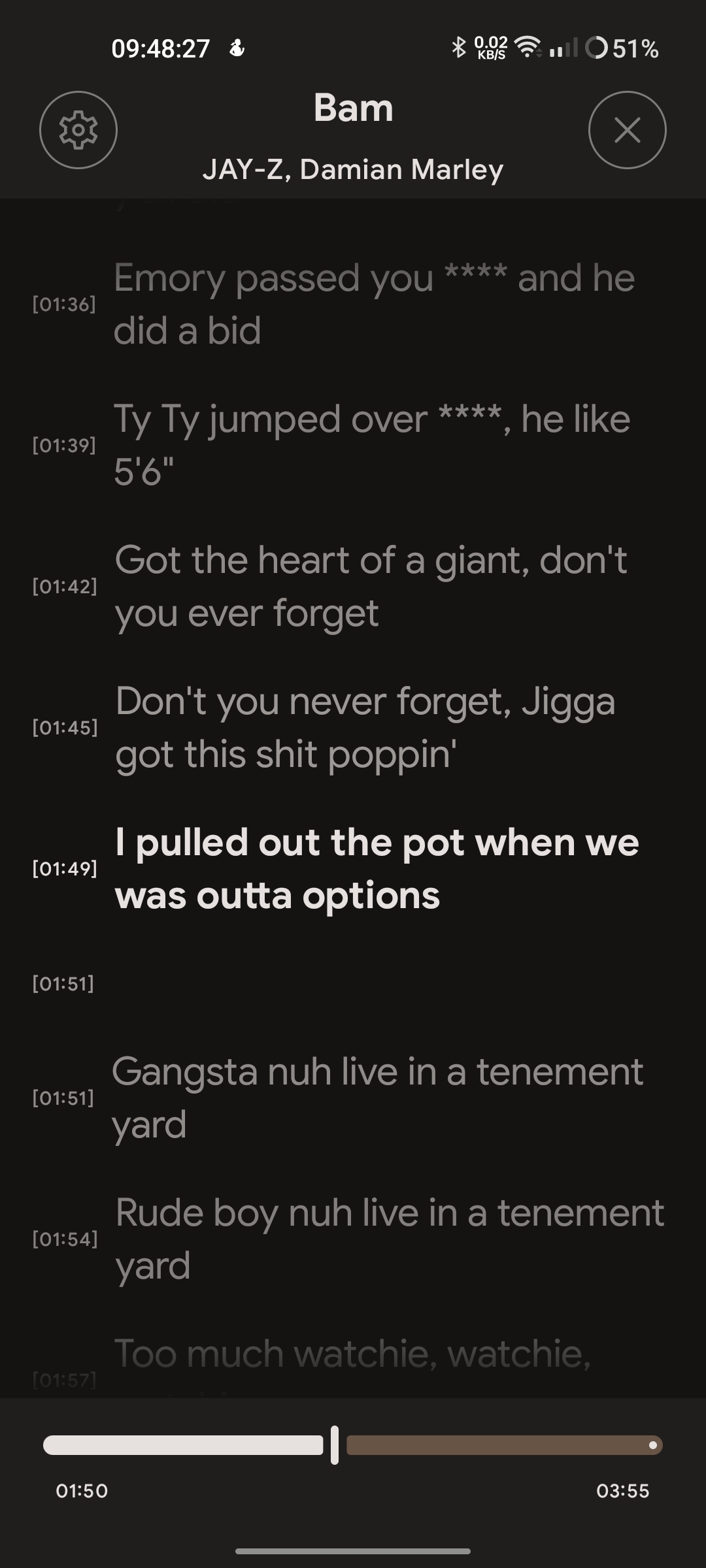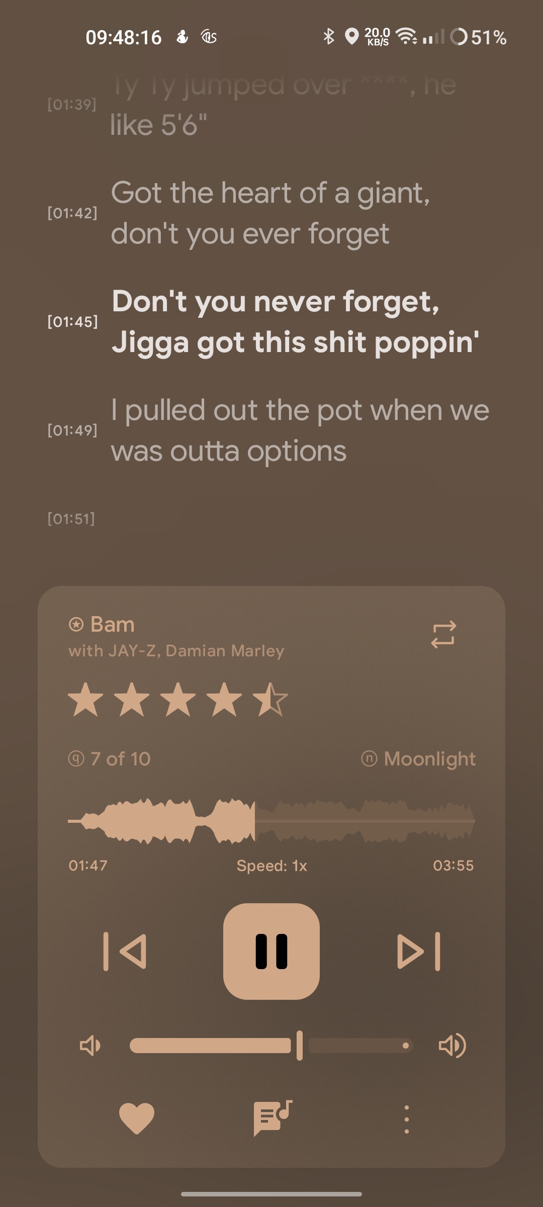 This long string of text tells Symfonium to display the currently playing song’s position in the queue with the queue’s size, and can also display different text based on the upcoming song’s album or if the queue is empty. I also used the \t and some cool Unicode symbols (which inspired the name) to make this more interesting to look at.