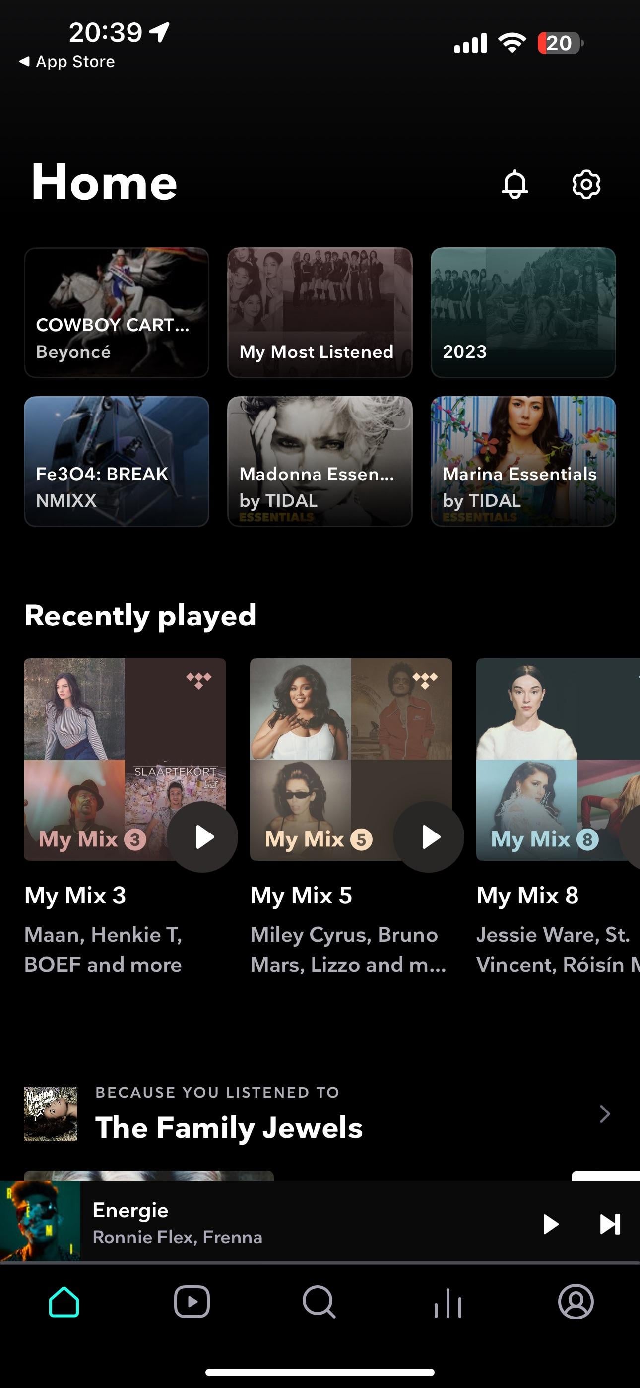 Screenshot 2 shows Tidal with the word “Home” in the banner.