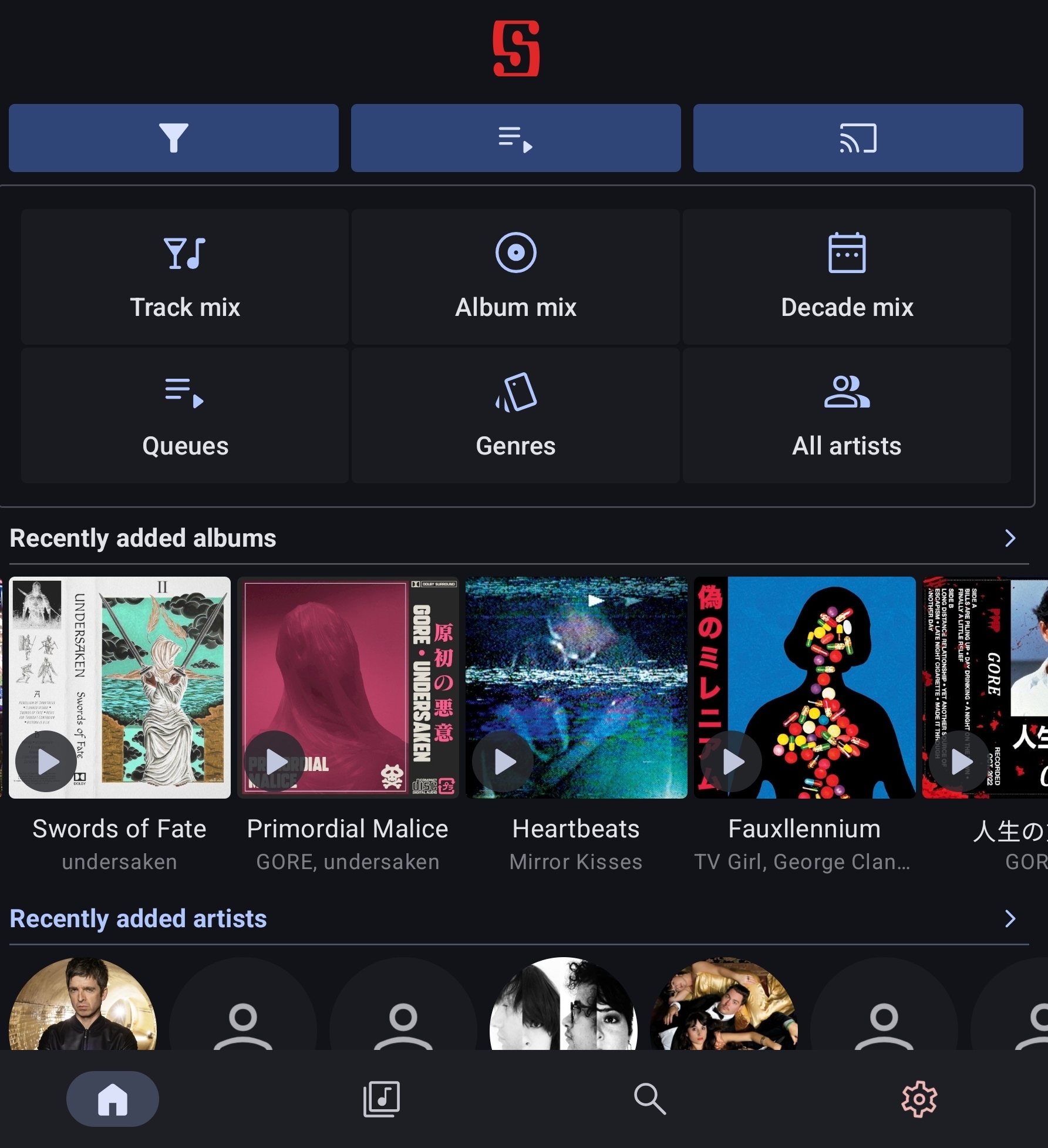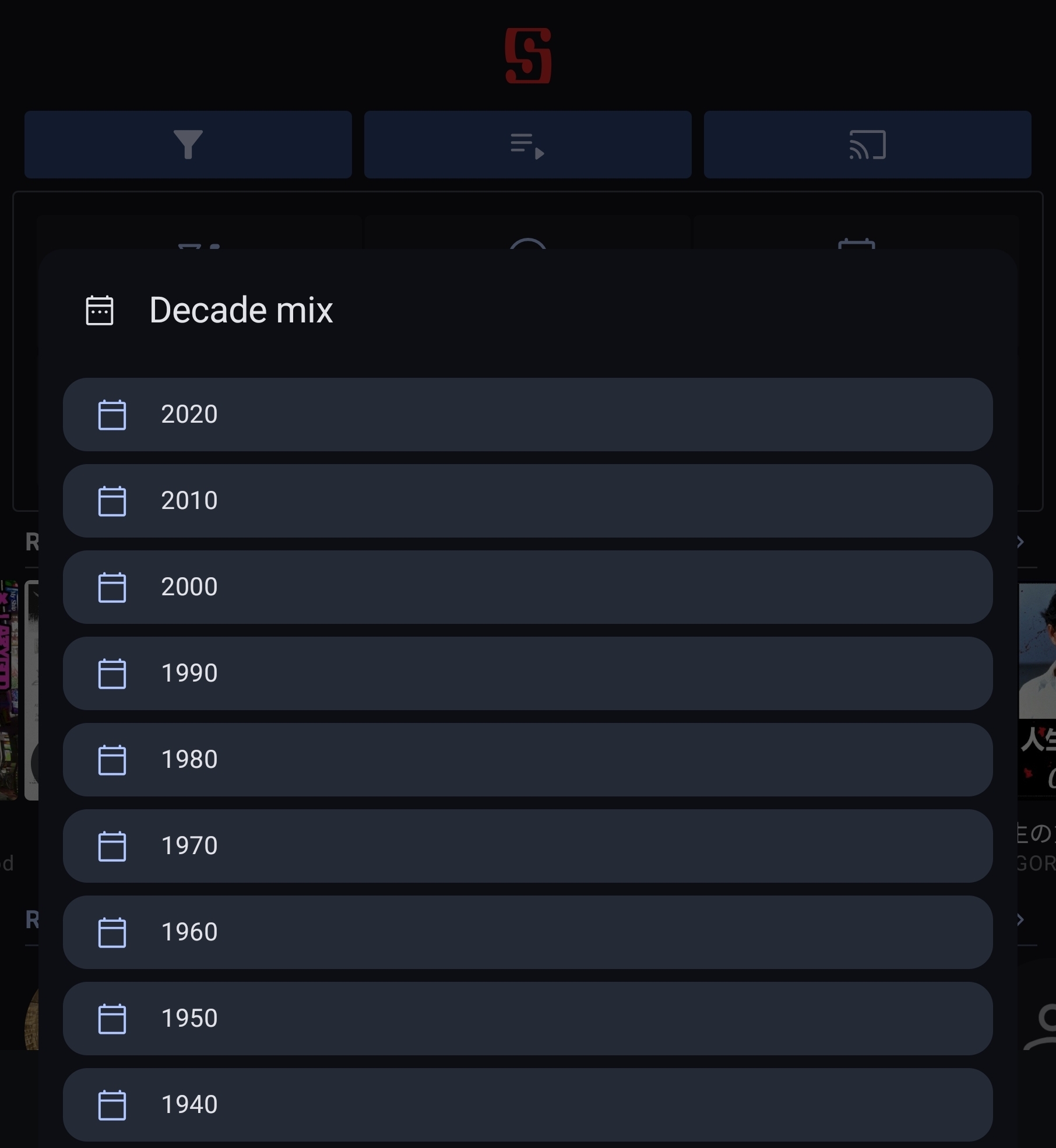 I really like how decade mix and queues work on the homepage. You click the icon and a list, contained within, pops up.