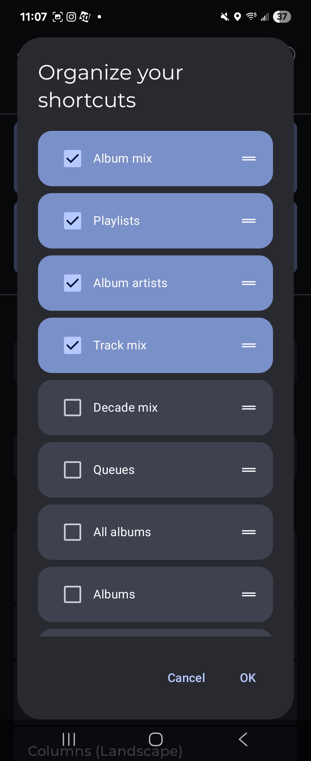 When altering the order e.g. Album Mix, Playlists, Album artists, Track Mix