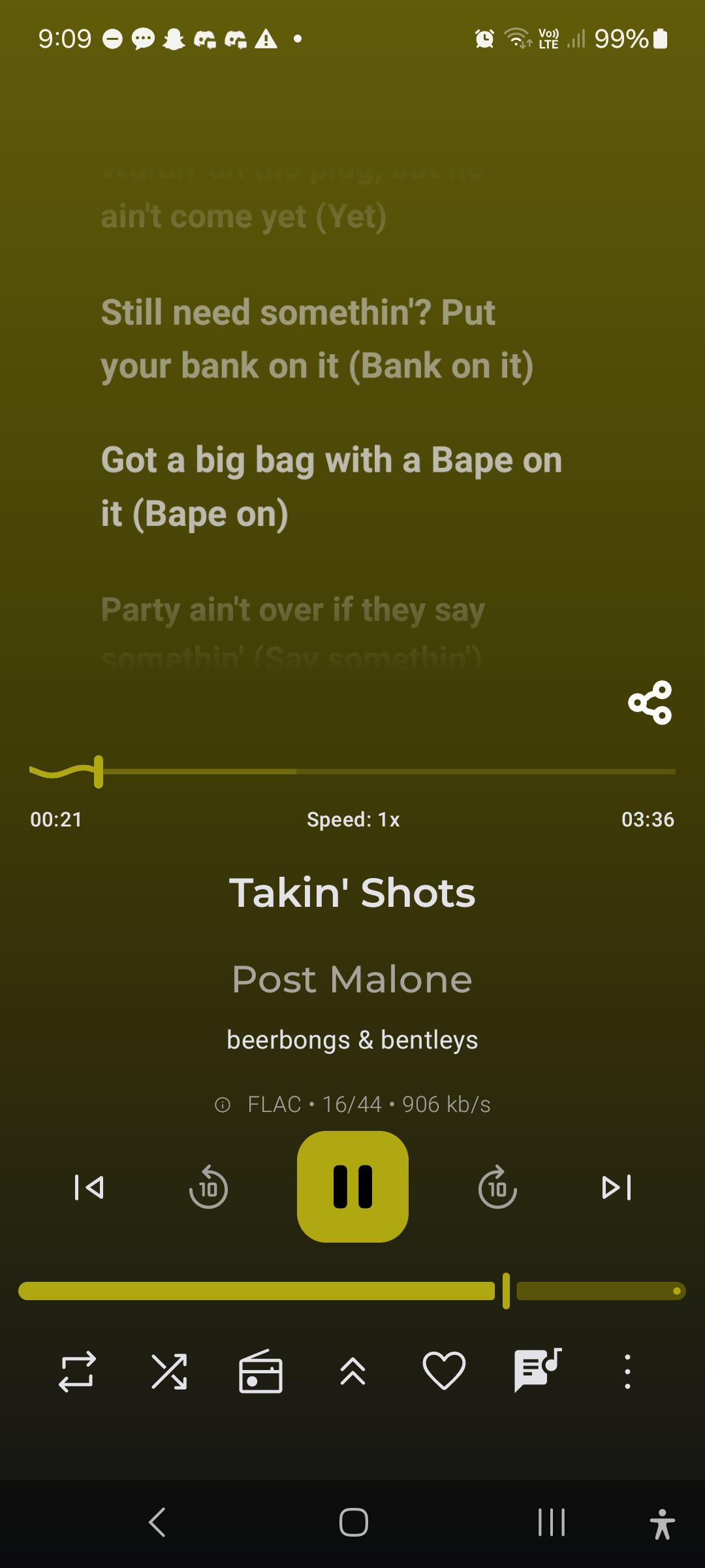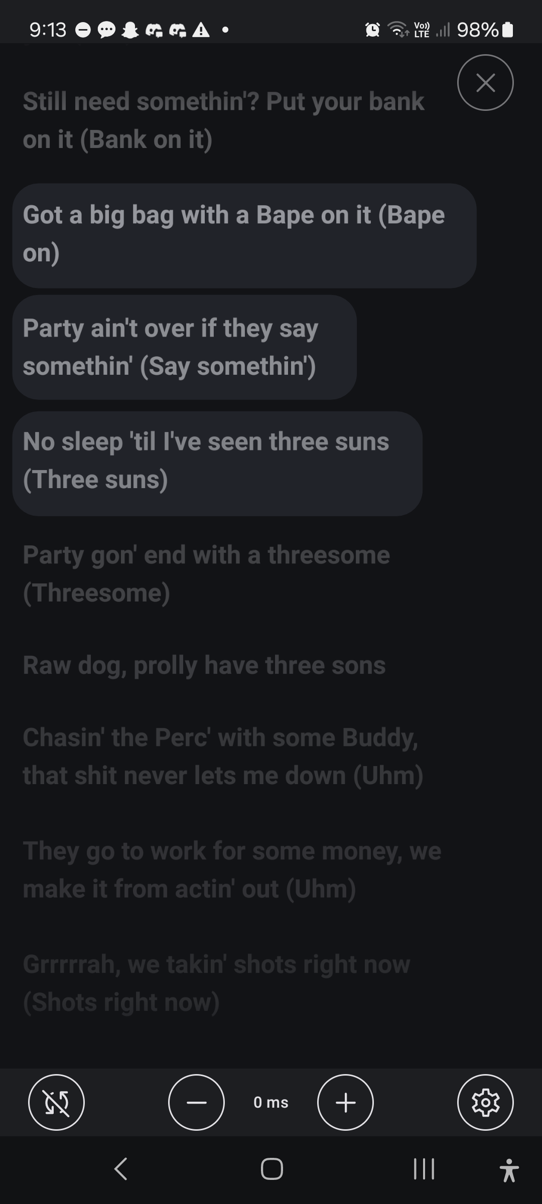 On Spotify, with lyrics up, you can hit share and select a string of lyrics that will then be placed in a card along with the song artwork that can be shared to stories or as an image on social apps like Discord and WhatsApp. Something like this would be amazing. All procedural based on selected lyrics and the metadata of the track.
