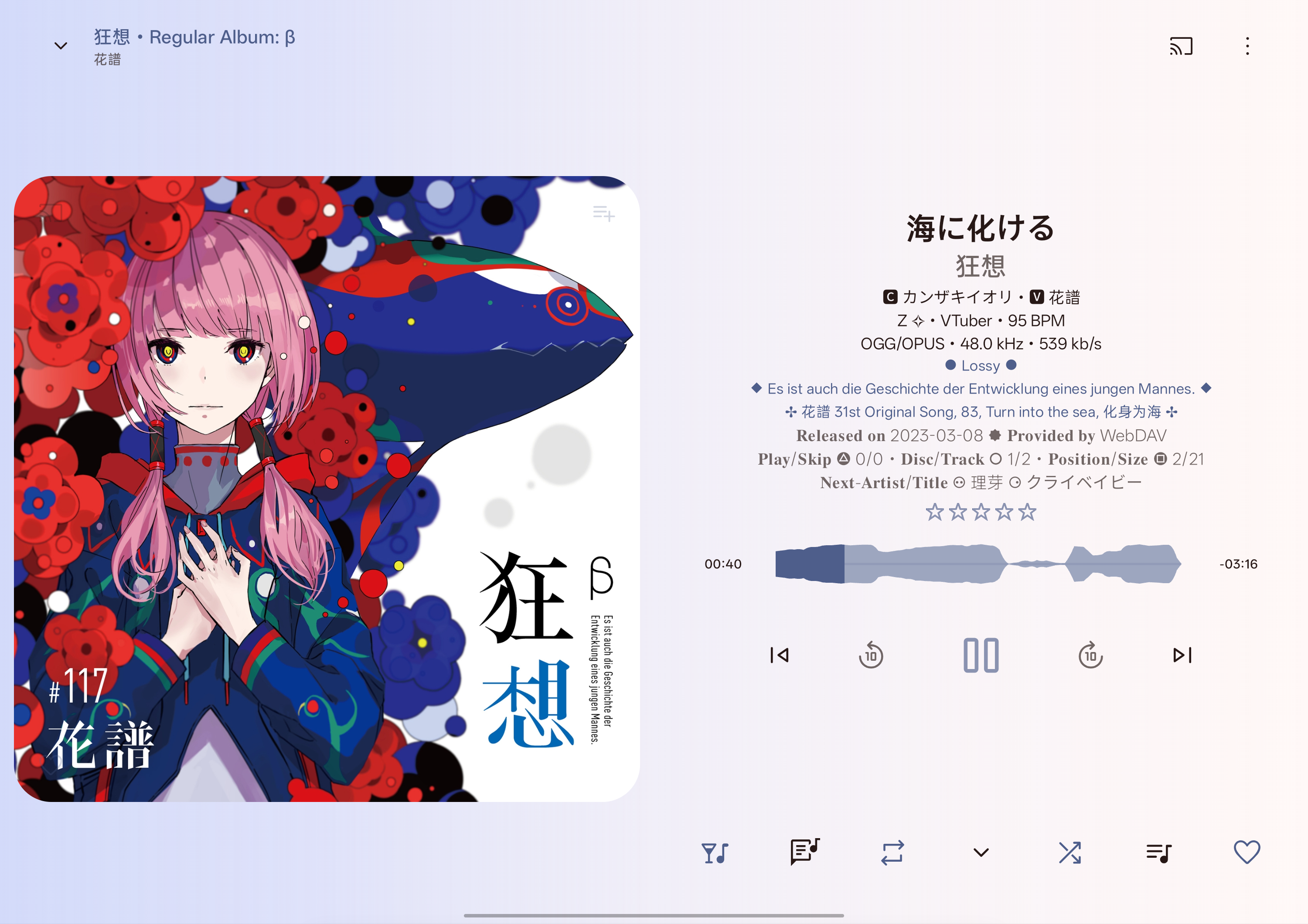 Since the Material Skin for Lyrion (fka Logitech Media Server) has been updated and offers a redesign, I’ve been working on matching it with my Symfonium layout to accommodate muscle memory across both. I’ve getting close enough to share a preview.