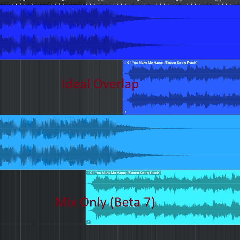 I’m back after demoing the “Mix Only” feature available in the new beta. Thank you for the implementation! However, I’m finding some issues with the new feature, and I believe I may have assumed incorrectly how smart fades decides its points to activate. I’ve got my DAW open to make some visual examples: