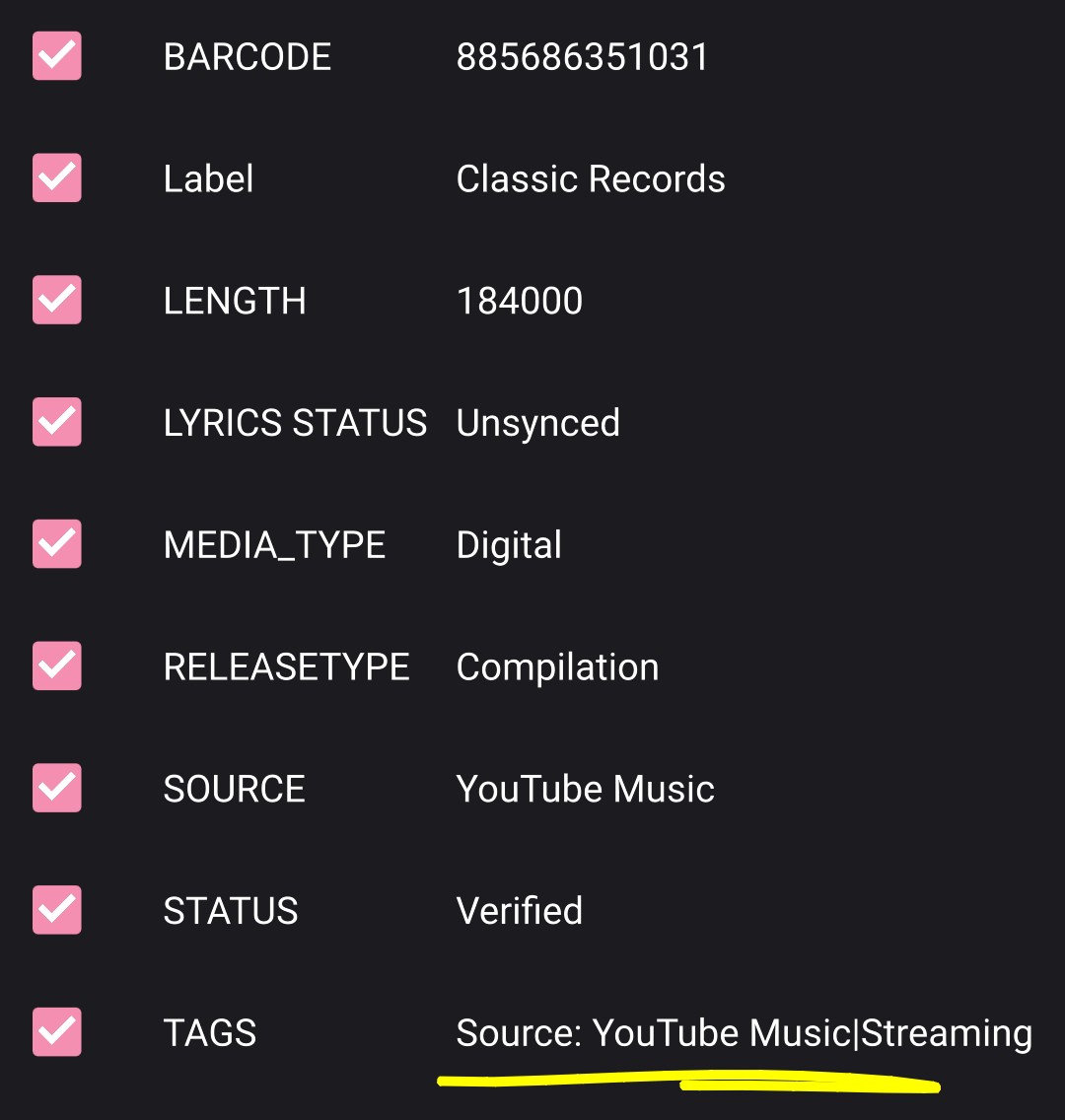 Said that, for the record, i will have to change my folder structure (once again) to adapt Symfonium system (this is not a problem since Musicbee do the job in minutes) to Album (Year) [Barcode] {Source} or maybe move the Source tag from TAGS tag to TRACK_TAGS tag with MP3TAG