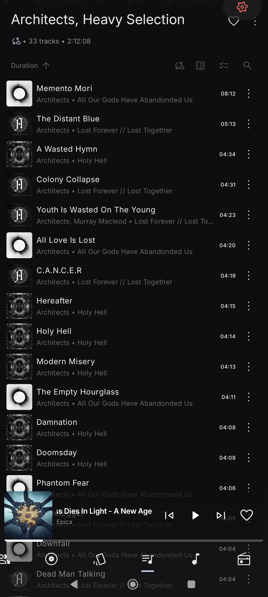 Below screenshots show sorts not working in album view (Aspiral screenshot) but working in playlist view (Architects screenshot)