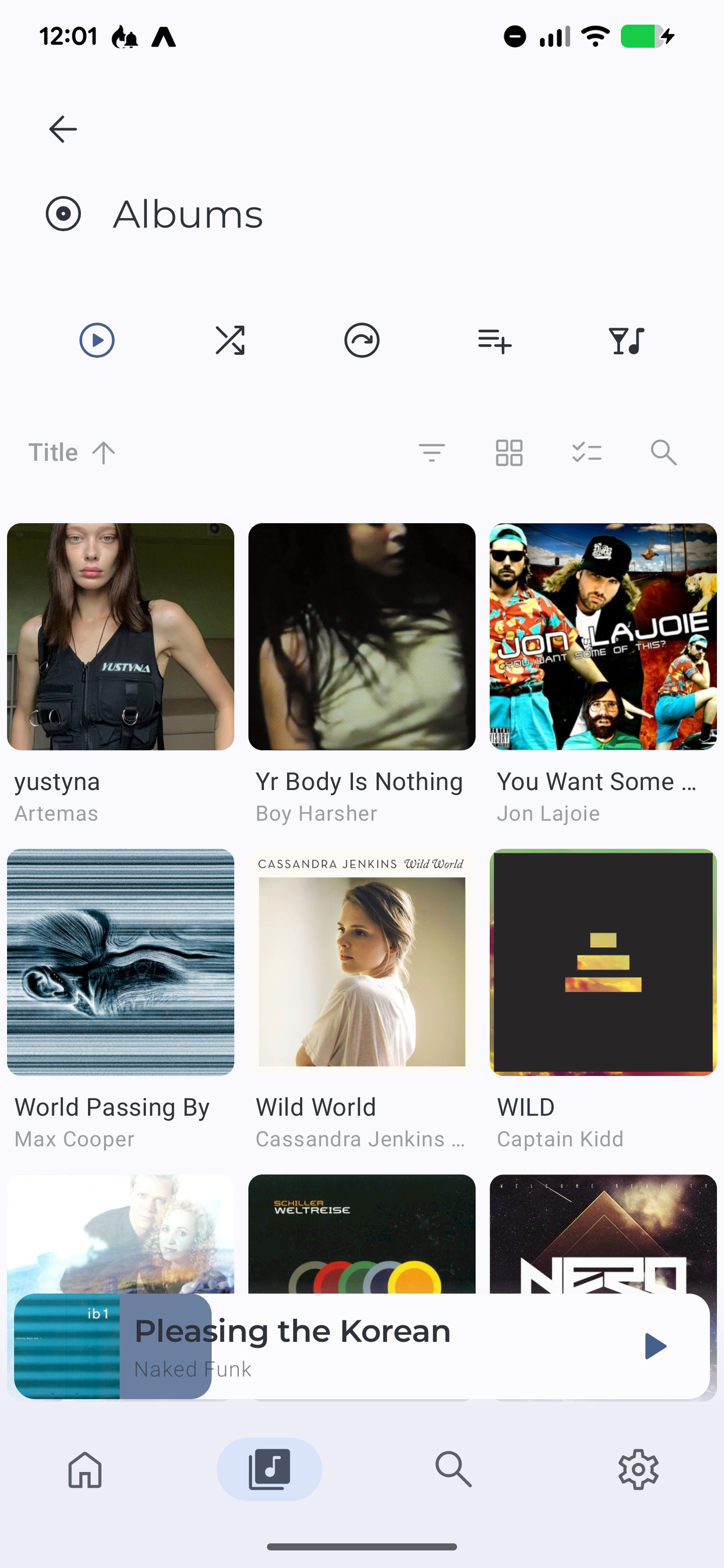 In Album list view choose to sort by Title ^ (up/ascending).