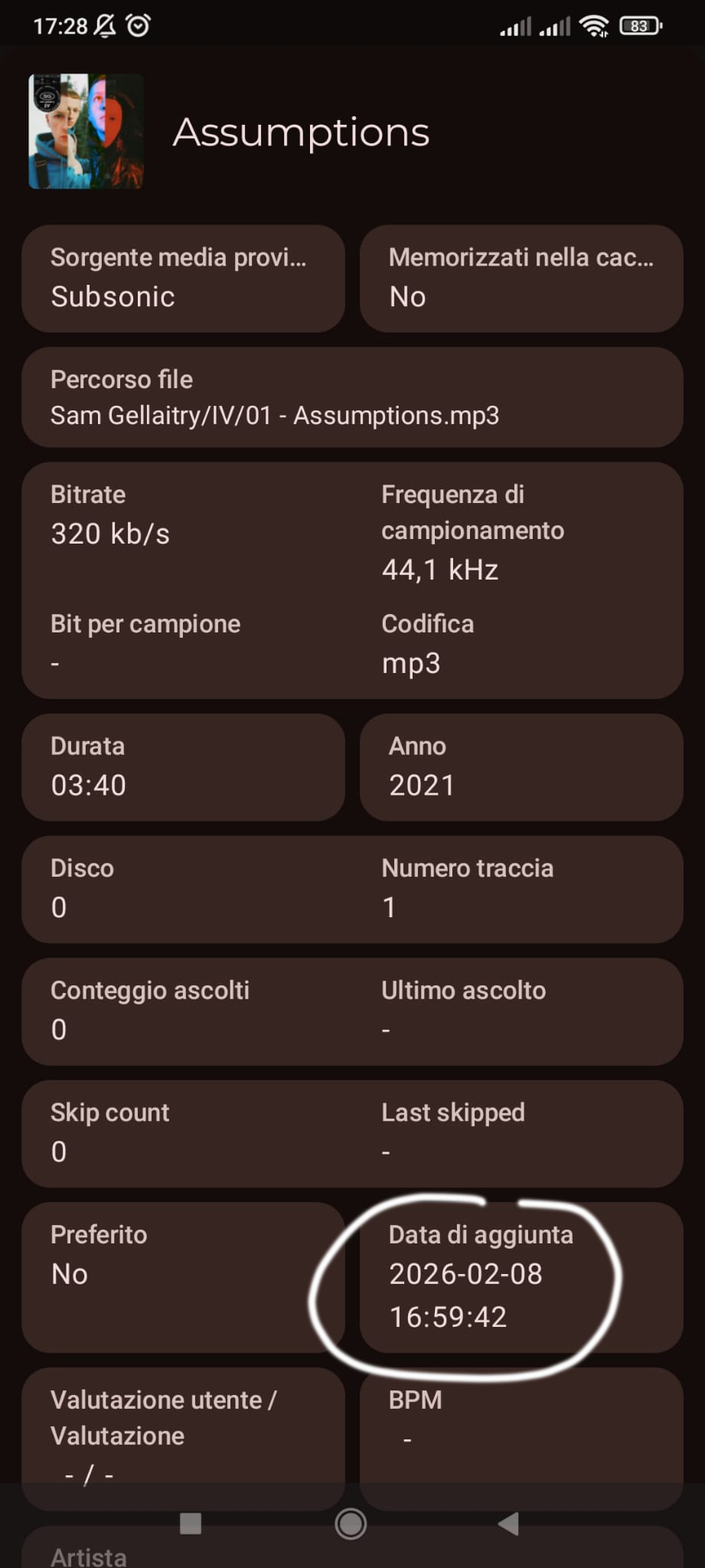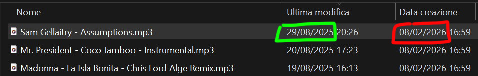 I noticed that if I tap on the info file it shows “date added”, see the phone screenshot “2026-02-08” (circled white). This date matches the “date of creation” of the file on my PC (circled red in the image attached).