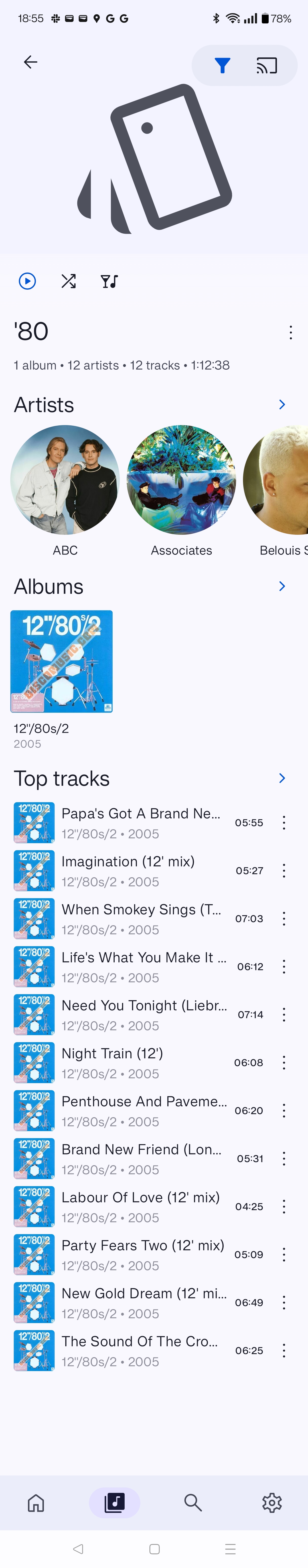 The screenshot shows that the app is listing a genre called '80 and that 12 tracks have this genre. None of these tracks have a GENRE tag.