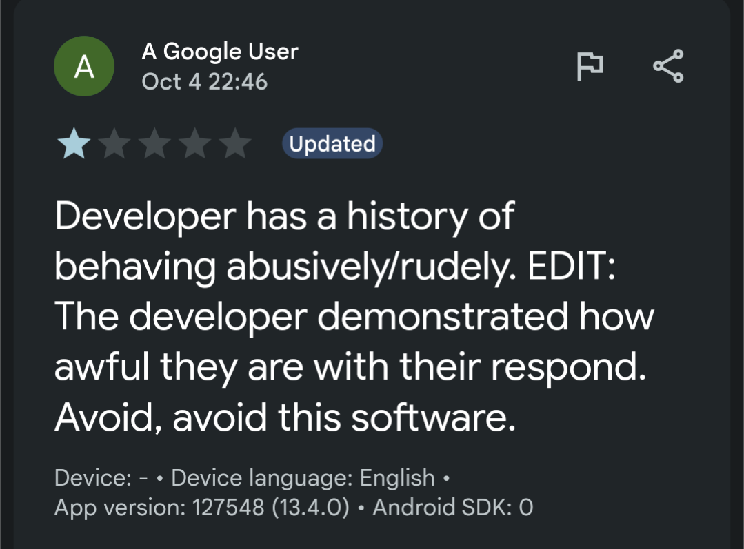 I PAID so the issue with my network must be solved by magic, I should not have to try to fix my issue or contact the dev.