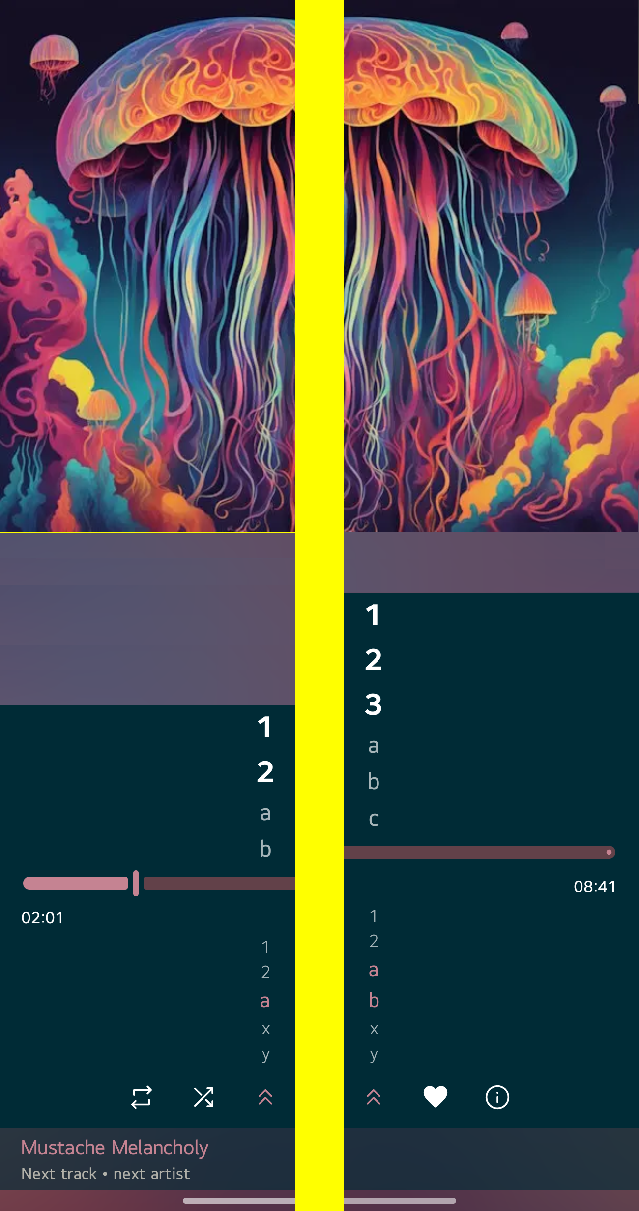 I would like the option to set the alignment for the cover art. Currently, the artwork is always center-justified. This means that if the size of the ‘Controls and Information’ section shifts (due to variable-line text boxes), the album art will inevitably shift its vertical position. These additional options will lock the art to the top/bottom of the cover art section, allowing the user to control where the blank space appears.
