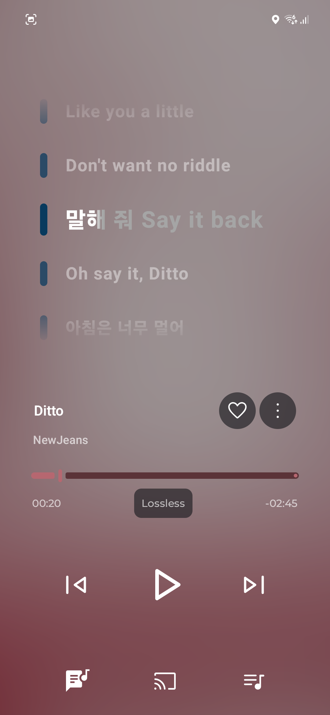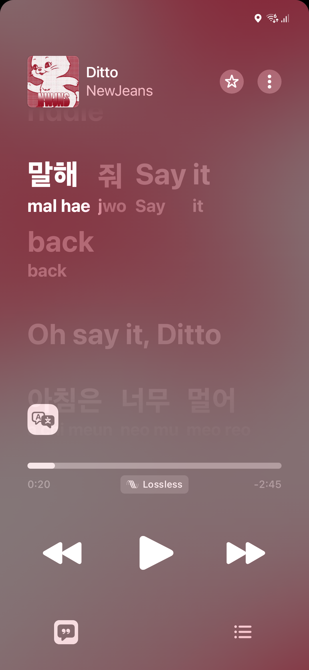 Unfortunately, my Apple Music app doesn’t want to give me the option to show the translations, but they are shown like the pronounciation (On Apple Music, you can have the pronounciation OR the translation shown, not both at the same time. But this could be ignored for a potential implementation on Symfonium)
