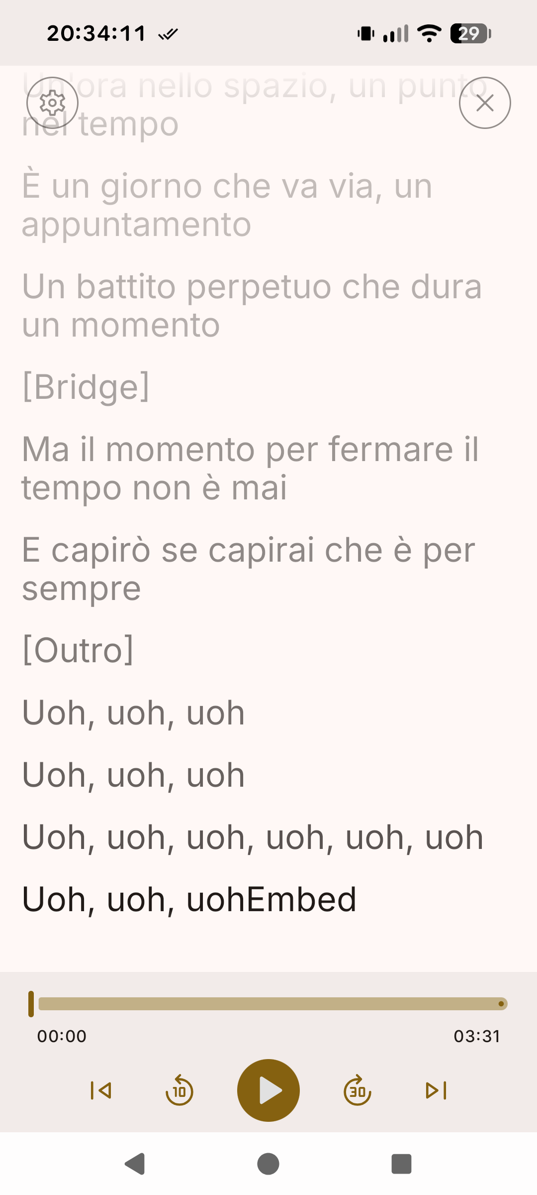 I’m having trouble reading unsynced lyrics: the color is a light gray that is hardly readable. Disabling the text shadow helped a little bit, but I believe that Symfonium is displaying the lyrics as if they were synced (i.e. with timing labels), and the lyrics position is always at the end (see second screenshot: the lyrics at the end become fully black). I tried every concievable setting in the lyrics settings screen to no avail.