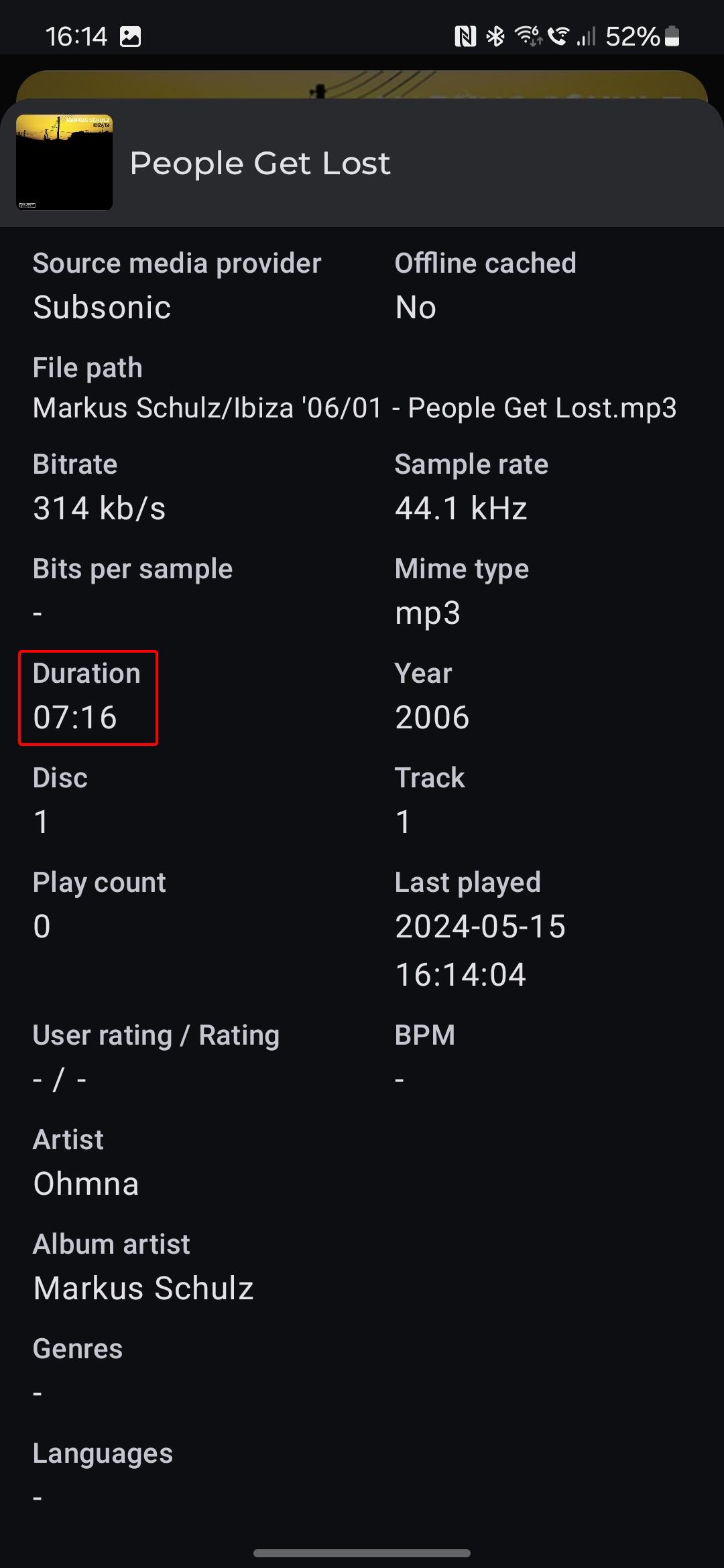 Some of my music files show the wrong track duration on the playback screen but report correct on the album view or track details.